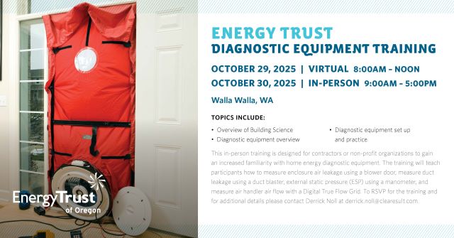 Energy Trust Two-Part Diagnostics Equipment Training (Walla Walla WA)