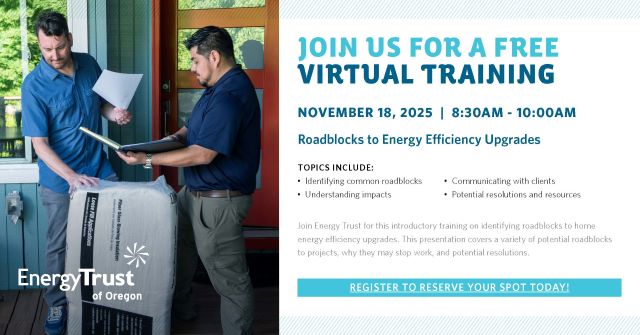 Join Energy Trust for this introductory training on identifying roadblocks to home energy efficiency upgrades. This presentation covers a variety of potential roadblocks to projects and why they may stop work as well as potential solutions.